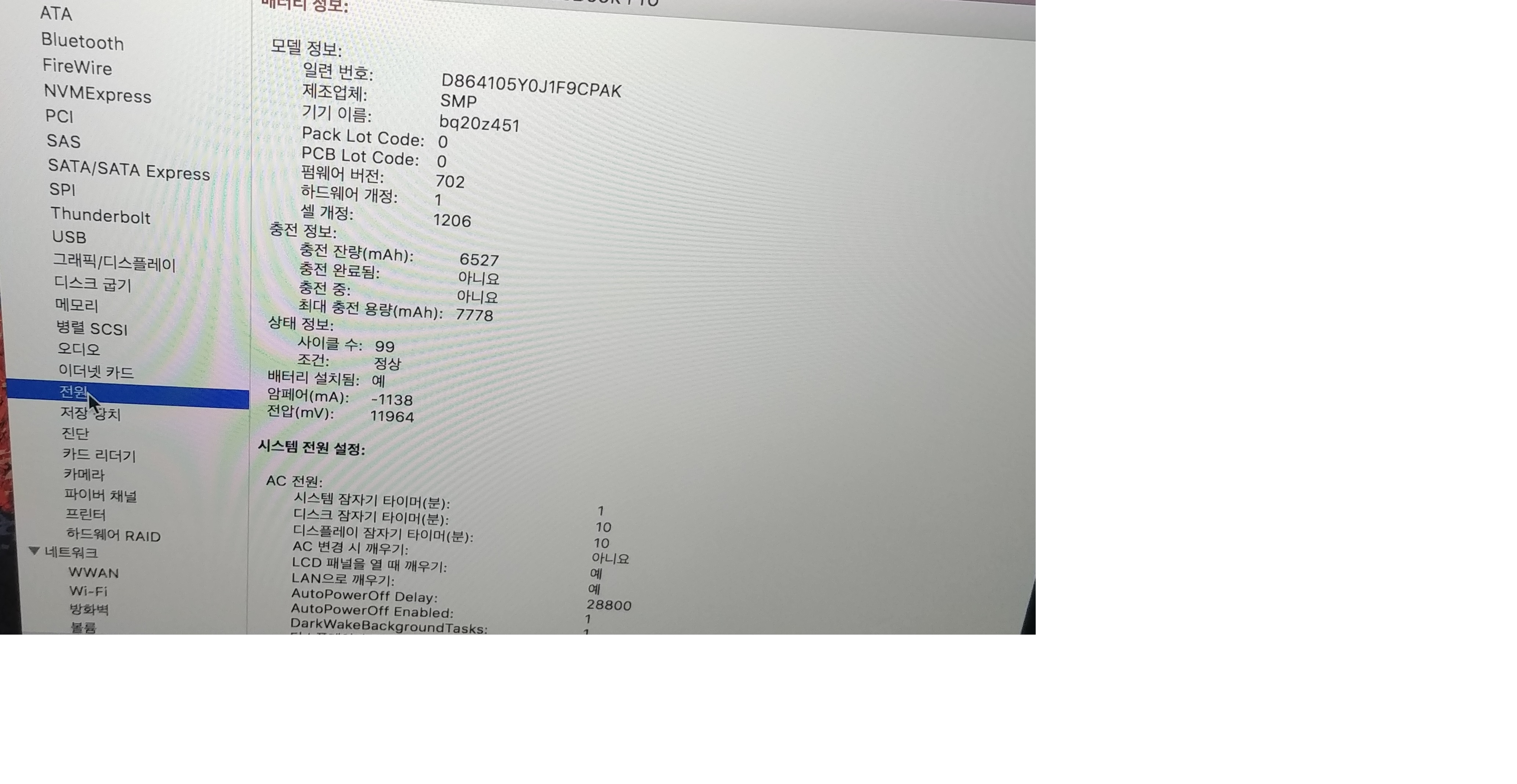 사이클 수 99  최대충전용량 7778