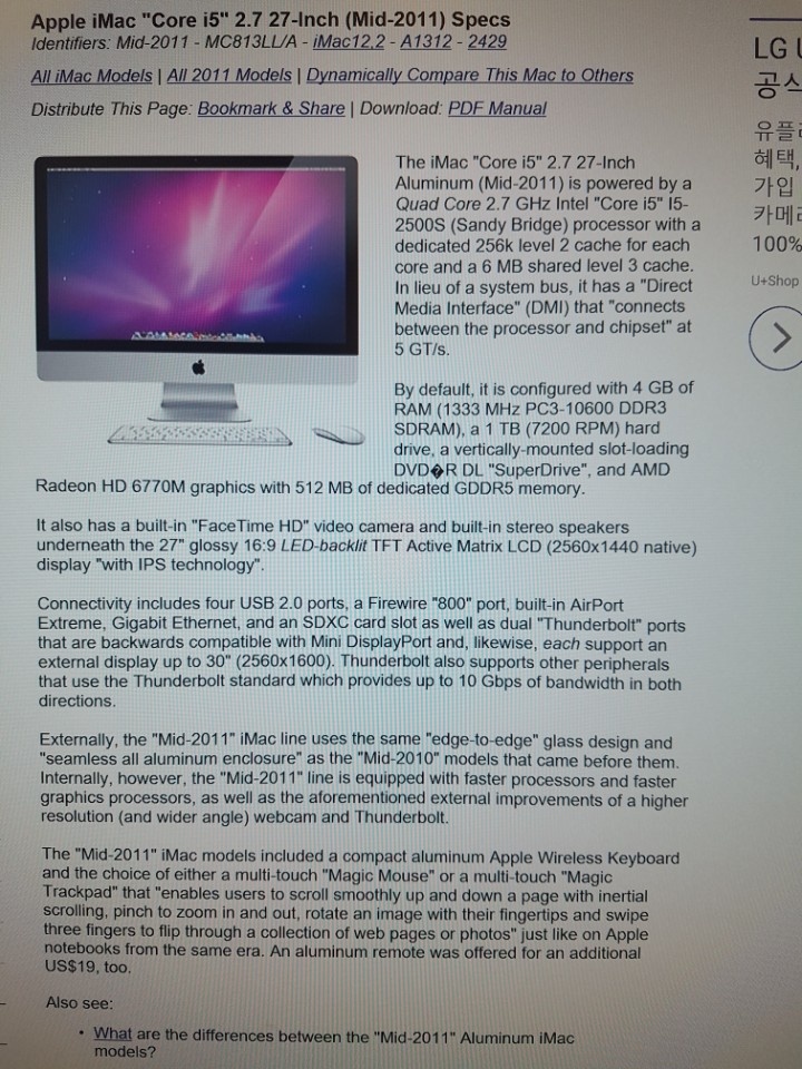 아이맥 2011 mid 27인치